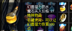 幻兽潜力药水:使用后可以让幻兽达到最佳状态,攻击防御都处于顶峰状态。