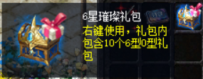 6星璀璨礼包:使用后直接获得10个6星O型礼包。