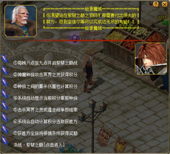 决战紫禁之巅,顾名思义,就是两大种族,神族与魔族每日的战场。