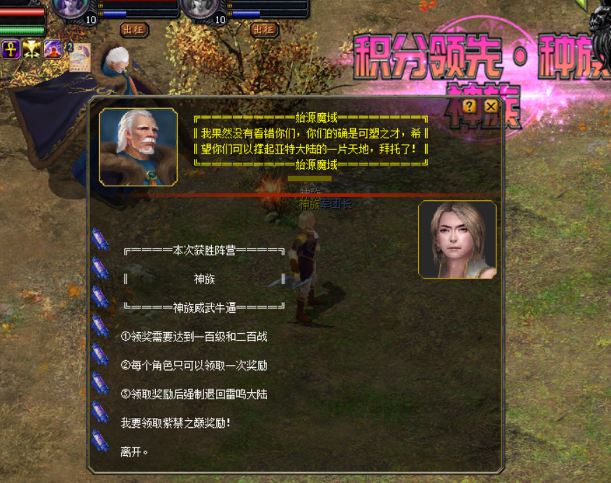 种族与种族之间每日都会有阵营战,所获胜的种族可以全服领取奖励。