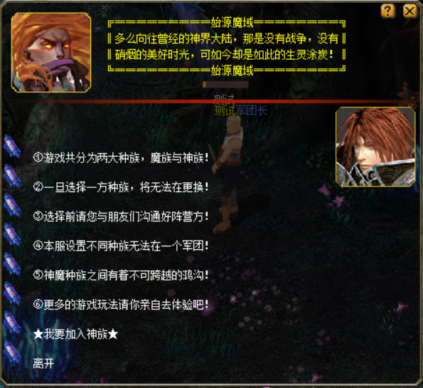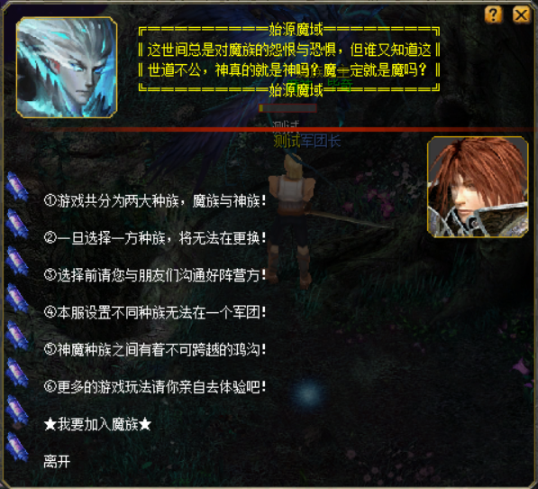 当玩家决定选择种族后,系统将自动将您分配至所属种族的军团内,且需要重新登录。